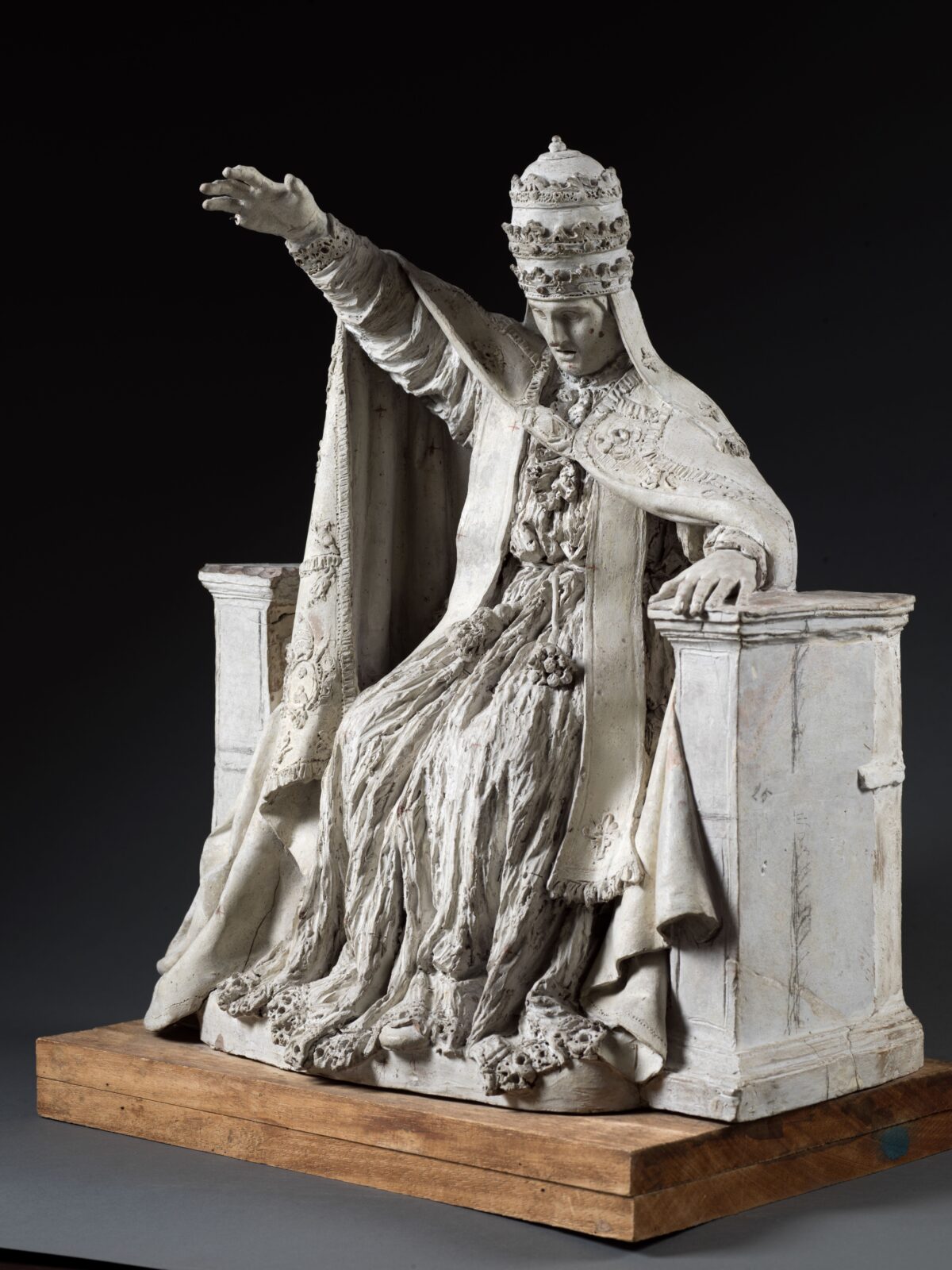 Μόλις ο Κανόβα αποφάσιζε για τη σύνθεσή του, έφτιαχνε ένα λεπτομερές πήλινο πρόπλασμα, το λεγόμενο «modello», για να το δείξει στους πάτρωνες, και συχνά ένα μεγαλύτερο μοντέλο, το οποίο οι βοηθοί του χρησιμοποιούσαν για να το χυτεύσουν σε γύψο και να φτιάξουν το τελικό μαρμάρινο γλυπτό. Οι ειδικοί θεωρούν ότι τα modelli από τερακότα του Canova «Πάπας Κλήμης XIV» και «Ευσέβεια», τα οποία περιλαμβάνονται στην έκθεση, είναι τα μεγαλύτερα σωζόμενα δείγματά του. Η «Ευσέβεια» απεικονίζει μια γυναίκα βαριά ντυμένη από την κορυφή ως τα νύχια- το σώμα της μετά βίας διαγράφεται κάτω από το ύφασμα, καθώς εκείνη κλίνει το κεφάλι της. Οι ειδικοί πιστεύουν ότι το μοντέλο του Κανόβα που απεικονίζει τον Πάπα Κλήμη ΙΔ’ καθισμένο σε θρόνο και φορώντας τα παπικά του ενδύματα μπορεί να ήταν έργο παρουσίασης. Σύμφωνα με το βιβλίο της έκθεσης, ο Κανόβα ζωγράφισε το γύψινο μοντέλο με λευκό χρώμα για να δείξει στον προστάτη του πώς θα φαινόταν το τελικό μάρμαρο. Παρόλο που ο Κανόβα είχε δει ίχνη χρωστικών σε αρχαία ρωμαϊκά γλυπτά που είχαν ανακαλυφθεί στη Ρώμη, επικρατούσε η πεποίθηση ότι τα κλασικά γλυπτά ήταν καθαρά λευκά.