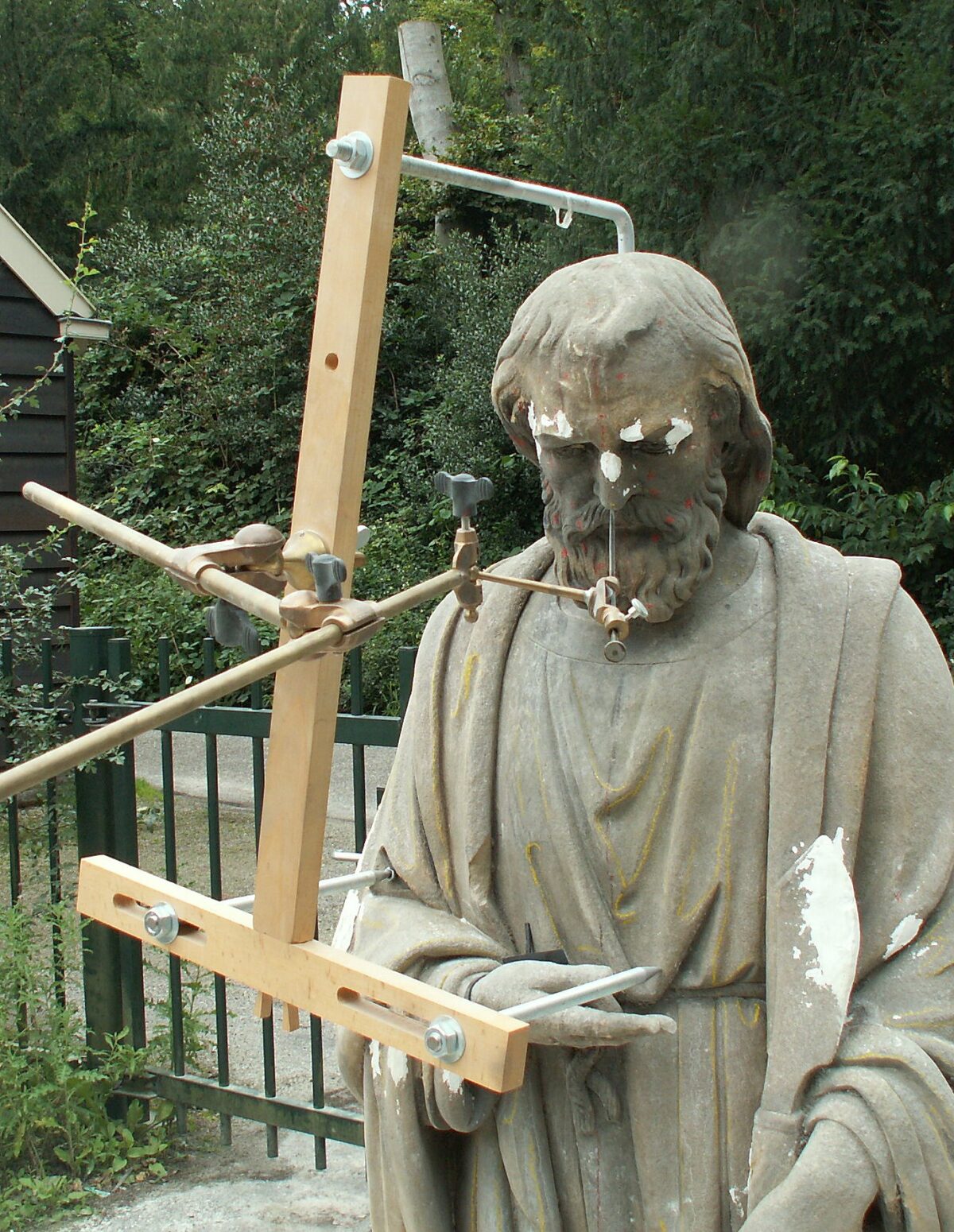 Σύμφωνα με το «The Oxford Companion of Art», το ποντάρισμα λειτουργεί με βάση την αρχή ότι τρία σταθερά σημεία μπορούν να χρησιμοποιηθούν για τον εντοπισμό ενός άλλου σημείου σε σχέση με αυτά. Τον πρώτο αιώνα, οι αρχαίοι Ρωμαίοι γλύπτες χρησιμοποίησαν μια πρωτόγονη εκδοχή του πονταρίσματος για να αντιγράψουν ελληνικά αγάλματα. Κατά τους ελληνιστικούς χρόνους, οι λιθοξόοι χρησιμοποιούσαν ένα βαρίδι και ένα πλαίσιο. Στην Αναγέννηση, οι καλλιτέχνες ανέπτυξαν διάφορες μεθόδους για την αντιγραφή μοντέλων. Αλλά μόλις στις αρχές του 19ου αιώνα εφευρέθηκε μια μηχανή υπόδειξης όπως αυτή που χρησιμοποιούσαν οι βοηθοί του Κανόβα. Οι μηχανές αυτές αποτελούνταν από ένα πλαίσιο που είχε κινητούς βραχίονες, με ρυθμιζόμενες ράβδους μέτρησης για τη μέτρηση του βάθους κάθε σημείου που έπρεπε να τρυπηθεί. Μπορούμε να δούμε πώς λειτουργεί η μηχανή αιχμής σε ένα άγαλμα από τον καθεδρικό ναό του Αγίου Ιωάννη, στην Ολλανδία. Τρεις στιβαρές ράβδοι λειτουργούν ως σταθερά σημεία, ενώ μια λεπτότερη ράβδος δείχνει προς την άκρη της μύτης, αντικατοπτρίζοντας τη μέτρηση που έπρεπε να σκαλιστεί στο μάρμαρο.