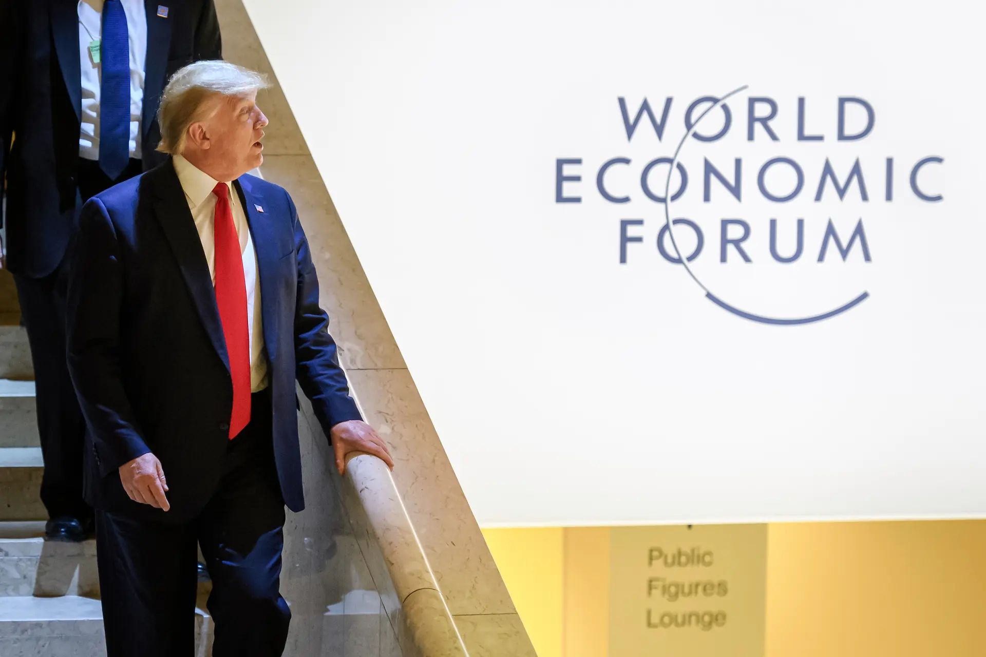 Ο πρόεδρος Ντόναλντ Τραμπ αποχωρεί από το συνεδριακό κέντρο κατά τη διάρκεια της ετήσιας συνάντησης του Παγκόσμιου Οικονομικού Φόρουμ στο Νταβός της Ελβετίας, στις 21 Ιανουαρίου 2020. (Fabrice Coffrini/AFP μέσω Getty Images).