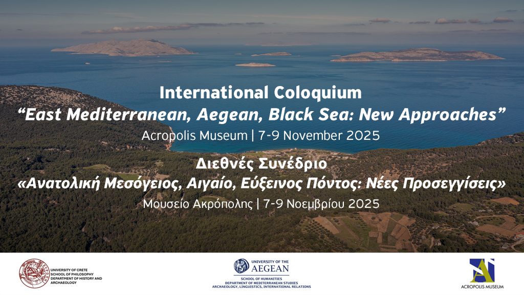 Το Μουσείο Ακρόπολης, σε συνεργασία με το Τμήμα Ιστορίας και Αρχαιολογίας της Φιλοσοφικής Σχολής του Πανεπιστημίου Κρήτης και το Τμήμα Μεσογειακών Σπουδών του Πανεπιστημίου Αιγαίου, οργανώνει διεθνές συνέδριο με τίτλο Ανατολική Μεσόγειος, Αιγαίο, Εύξεινος Πόντος: Νέες Προσεγγίσεις, στις 7, 8 και 9 Νοεμβρίου 2025, στο Αμφιθέατρο «Δημήτριος Παντερμαλής» του Μουσείου Ακρόπολης.