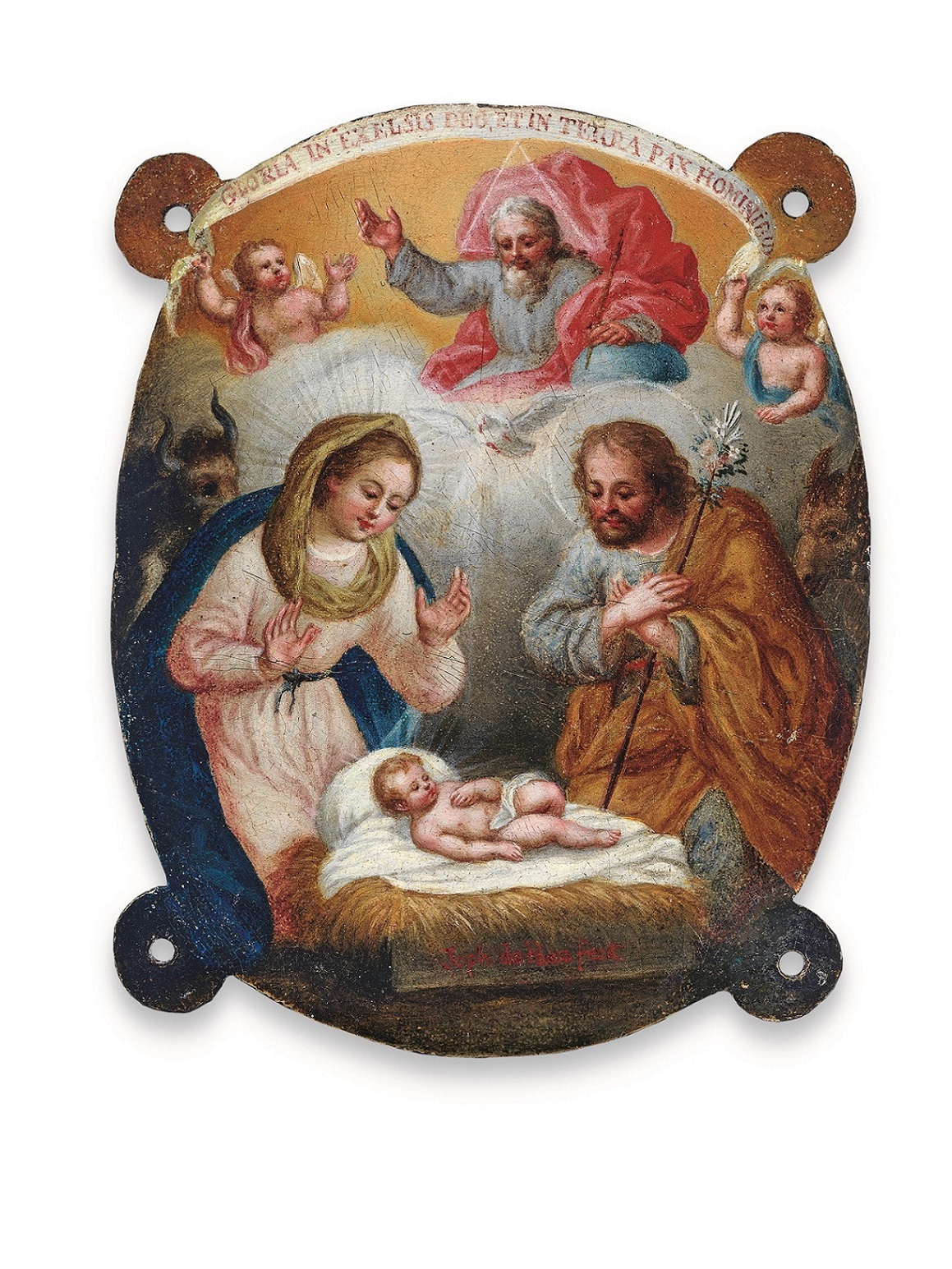 Μια μικρή εικόνα με τίτλο «Η Αγία Οικογένεια» του Μεξικανού καλλιτέχνη Νικολάς Ροντρίγκες Χουάρες (Nicolás Rodríguez Juárez) είναι χαρακτηριστική όσον αφορά αυτό το σημείο. Ο Χουάρες απεικονίζει τη Μαρία και το θείο Βρέφος να μας κοιτάζουν απευθείας, ενώ ο Ιωσήφ κοιτάζει τον μικρό Χριστό, ο οποίος σηκώνει το χέρι Του και μας ευλογεί. Και οι τρεις μορφές εκπέμπουν θεϊκό φως και η πρόσκληση να συνδεθούμε με την πίστη μας λάμπει έντονα. Ξεχνάμε ότι αυτές οι μορφές δεν είναι απόλυτα σωστές ανατομικά, με τα μεγάλα μάτια, τα παχουλά μάγουλα και τα παχουλά χέρια τους.
