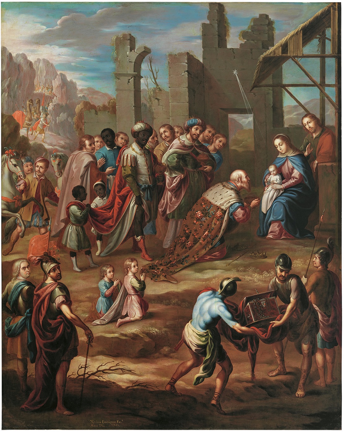 Οι ισπανόφωνοι καλλιτέχνες εμπνεύστηκαν από τις ευρωπαϊκές συνθέσεις παραμένοντας πιστοί στις δικές τους καλλιτεχνικές παραδόσεις. Για παράδειγμα, ένα μέλος της νεοσύστατης (1722) Ακαδημίας ζωγράφων του Μεξικού, ο καλλιτέχνης Νικολάς Ενρίκες (Nicolás Enríquez), αναζήτησε έμπνευση στο βιβλίο χαρακτικών των Ιησουιτών με τίτλο «Evangelicae Historiae Imagines» («Εικόνες της Ευαγγελικής Ιστορίας») του Ιερώνυμου Ναδάλ για να ζωγραφίσει τη «Λατρεία των Βασιλέων, με τον Αντιβασιλέα Πέδρο δε Κάστρο υ Φιγκερόα, Δούκα της Λα Κονκίστα». Στον ίδιο πίνακα, ο Ενρίκες κάνει αναφορά και σε ένα έργο στον καθεδρικό ναό της Πόλης του Μεξικού του Μεξικανού ζωγράφου Χουάν Ροντρίγκες Χουάρες.