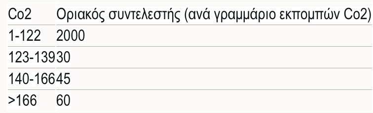 Νέα κλίμακα βάσει Co2 (για οχήματα που έχουν ταξινομηθεί από 1/11/2010)