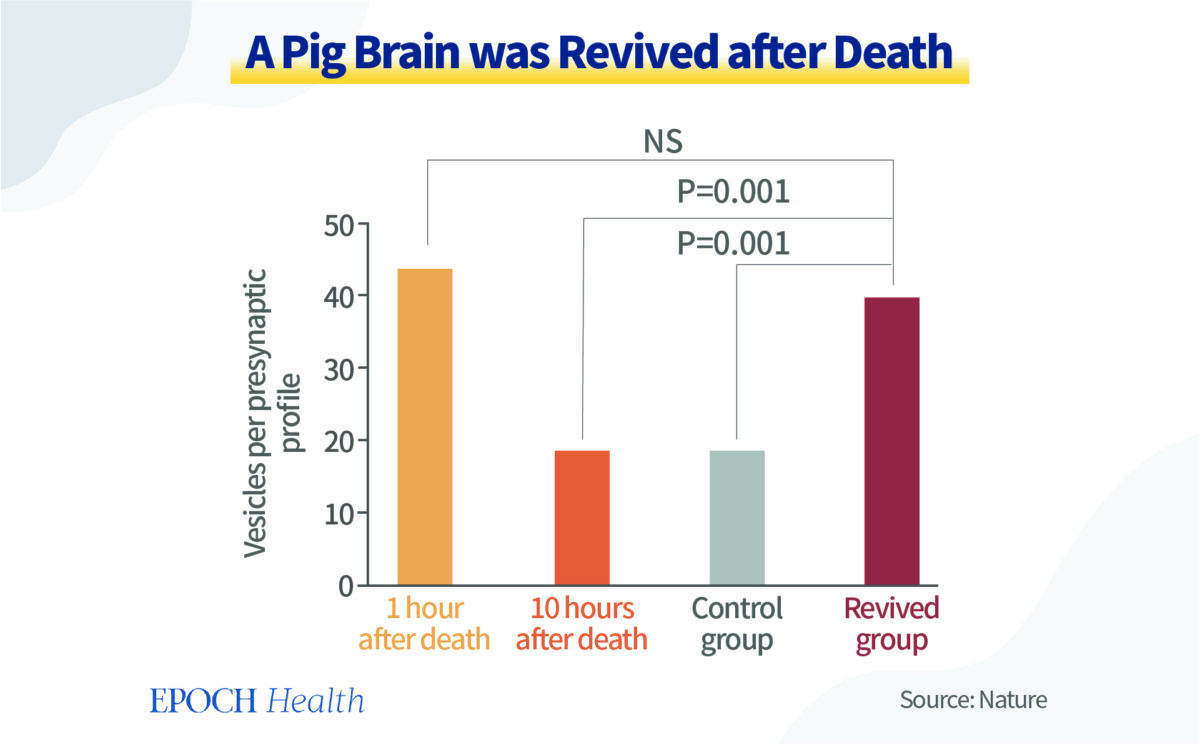 Μια άλλη μελέτη που δημοσιεύθηκε στο Nature έδειξε ότι η αναβίωση των εγκεφάλων των ζώων μετά το θάνατο είναι εφικτή. Το 2019, σε συνθήκες ex vivo, ερευνητές από το Πανεπιστήμιο Γέηλ κατάφεραν να διατηρήσουν ανέπαφη τη μικροκυκλοφορία και τις κυτταρικές λειτουργίες εγκεφάλων χοίρων. Το πέτυχαν αυτό με τη συνεχή παροχή θρεπτικών συστατικών και την απομάκρυνση των μεταβολικών αποβλήτων, επιτρέποντας στη διαδικασία ανάκαμψης να επιμείνει έως και έξι ώρες.