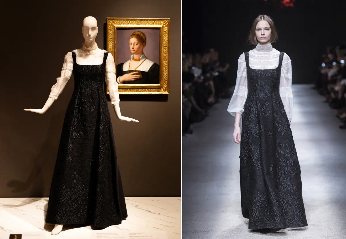 Ένα από τα πιο εντυπωσιακά εκθέματα που παρουσιάζονται είναι η «Προσωπογραφία κυρίας» (περ. 1555), του μανιεριστή ζωγράφου Άνιολο Μπρονζίνο, αυλικού ζωγράφου του ισχυρού Φλωρεντινού ηγεμόνα Κόζιμο Α΄ των Μεδίκων, δίπλα στο οποίο έχει τοποθετηθεί ένα σύνολο από τη φθινοπωρινή κολεξιόν 2015 της Αλμπέρτα Φερρέττι. Ο πίνακας απεικονίζει μια άγνωστη γυναίκα που πιθανότατα είχε σχέση με την αυλή των Μεδίκων.