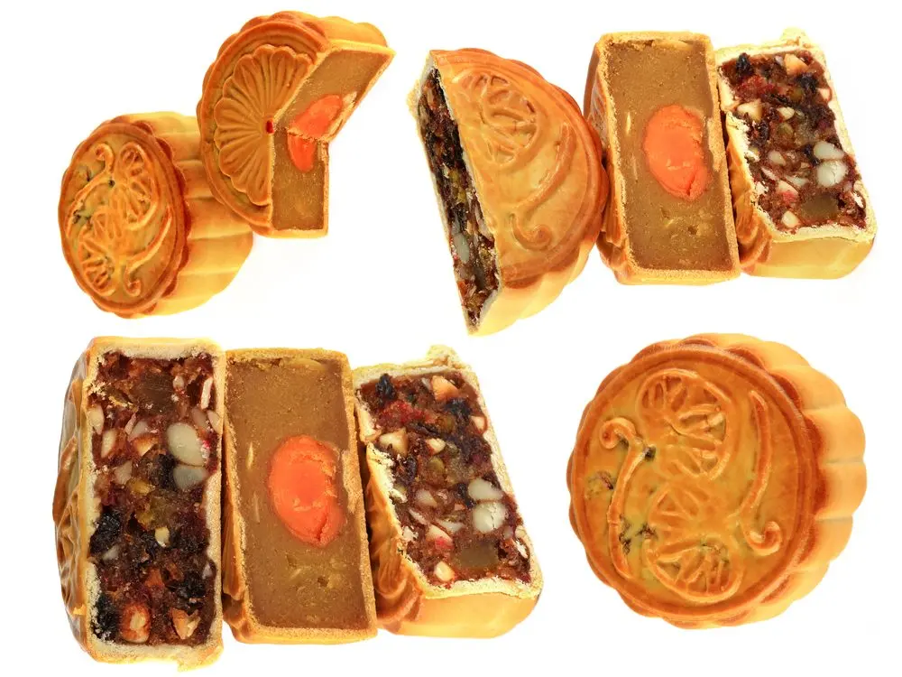 Οι παραδοσιακές φεγγαρόπιτες έχουν μια τρυφερή, χρυσοκάστανη κρούστα που περιβάλλει μια γλυκιά, πυκνή γέμιση. Συνηθισμένα είδη είναι η λευκή πάστα από σπόρους λωτού και η γλυκιά πάστα από κόκκινα φασόλια – μερικές φορές με ένα αλατισμένο κρόκο αυγού μέσα (ή δύο, αν είστε τυχεροί).