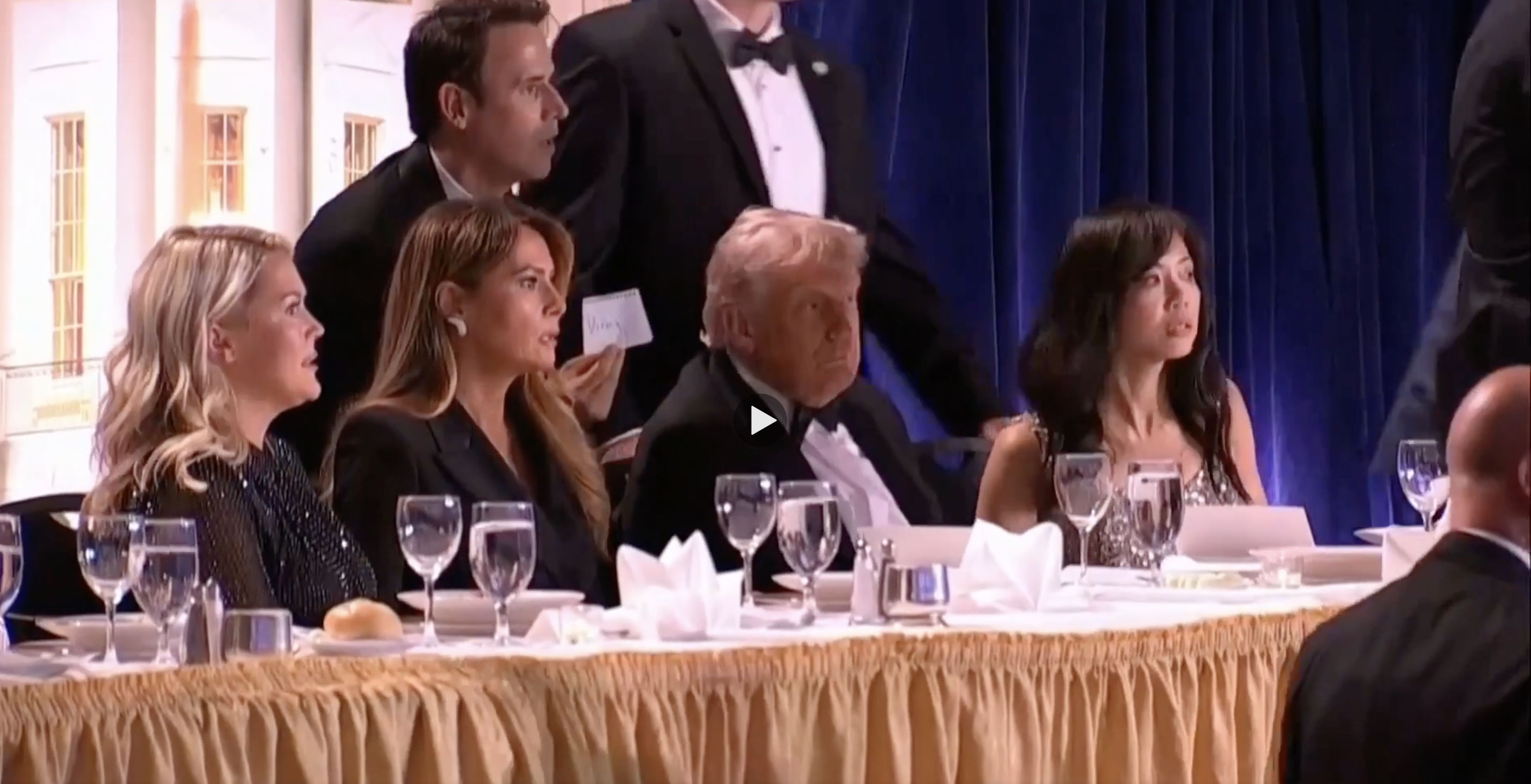Ο Τραμπ παρευρισκόταν για πρώτη φορά στο συγκεκριμένο δείπνο ως πρόεδρος και επρόκειτο να εκφωνήσει ομιλία περί τις 21:00. Όπως είπε, αρχικά νόμισε ότι ο θόρυβος που άκουσε ήταν «ένας δίσκος που έπεσε».