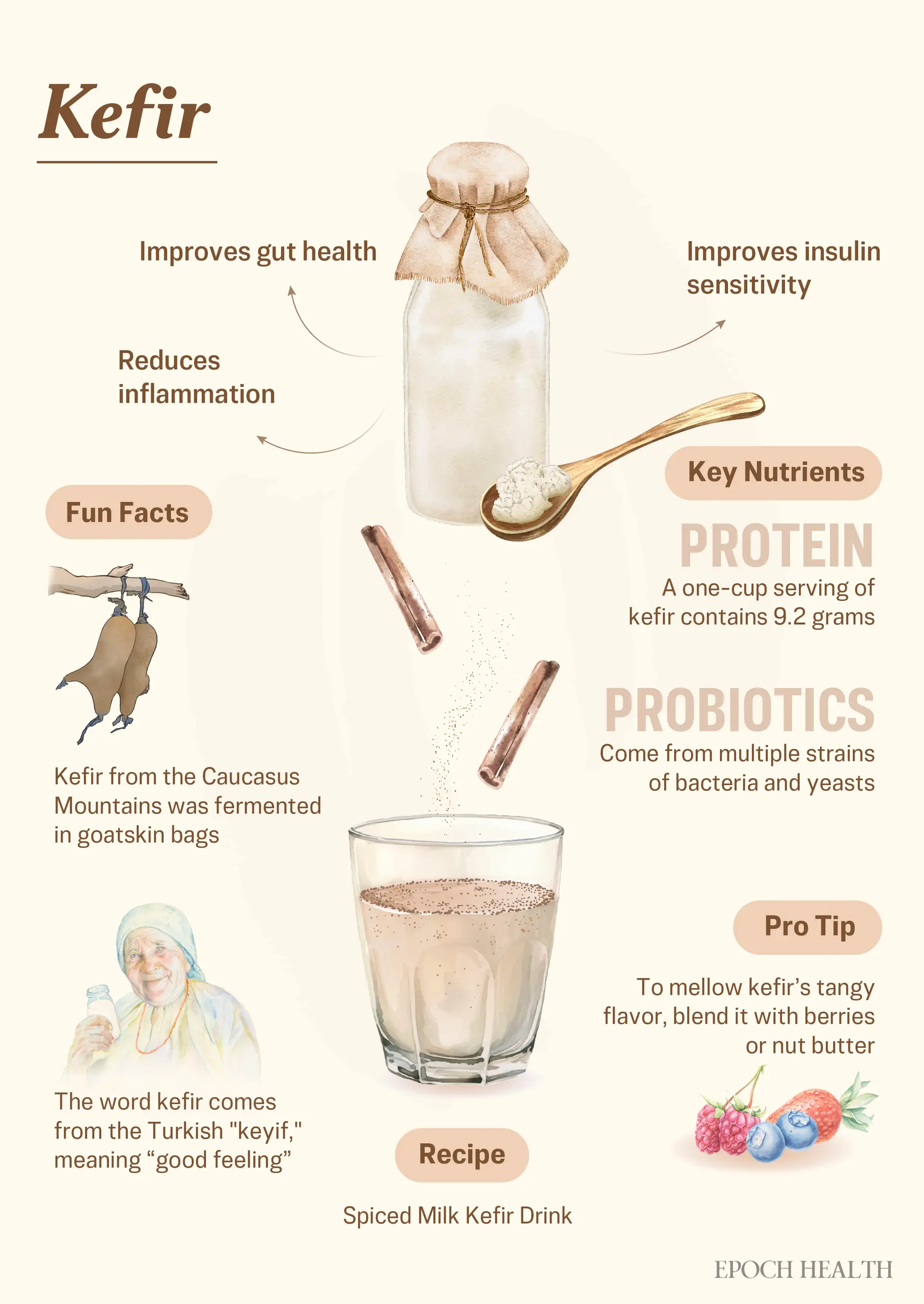 «Το κεφίρ είναι ένα ζυμωμένο τρόφιμο που περιέχει δισεκατομμύρια βακτήρια και βιοδραστικές ενώσεις που βοηθούν στη βελτίωση της ποικιλομορφίας του μικροβιώματος του εντέρου μας», δήλωσε η Ρέιτσελ Γκαργκάνο, διαιτολόγος, στην Epoch Times. «Ένα ποικιλόμορφο μικροβίωμα συμβάλλει τόσο στην υγεία του εντέρου όσο και στη γενική υγεία».
