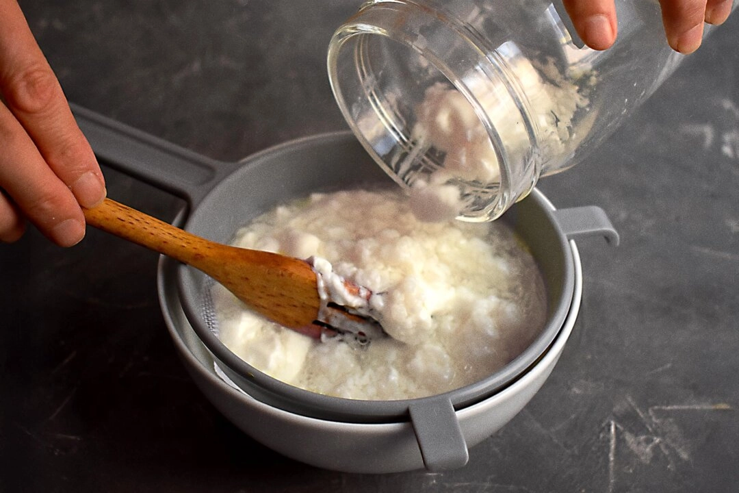 Ρίξτε το σε κεφίρ θερμοκρασίας δωματίου, ανακατεύοντας συνεχώς μέχρι να ομογενοποιηθεί το μείγμα.