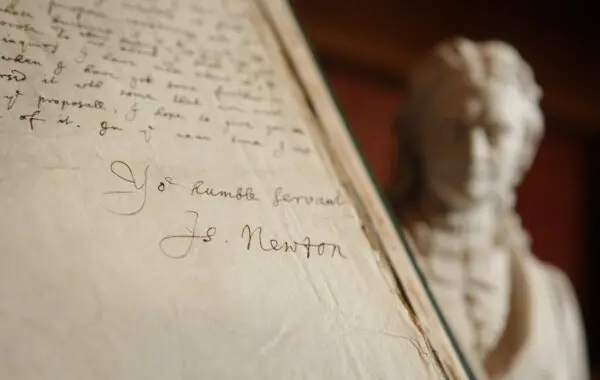 Η υπογραφή του Ισαάκ Νεύτωνα σε βιβλίο με επιστολές του. Βασιλική Εταιρεία, Λονδίνο, 24 Νοεμβρίου 2009. (Peter Macdiarmid/Getty Images)