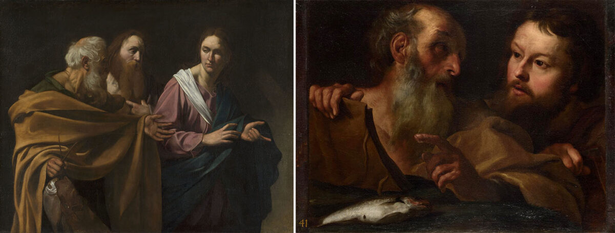 Ακόμα μεγαλύτερες ομοιότητες υπάρχουν μεταξύ της τέχνης του Καραβάτζιο και του συχνά ξεχασμένου έργου του Μπερνίνι ως ζωγράφου. Το έργο του Καραβάτζιο «Η κλήση των Αγίων Πέτρου και Ανδρέα» και το έργο του Μπερνίνι «Ο Άγιος Ανδρέας και ο Άγιος Θωμάς» θα μπορούσαν να θεωρηθούν κατά λάθος ως πίνακες του ίδιου καλλιτέχνη. Έχουν την ίδια ρεαλιστική απεικόνιση των χαρακτηριστικών των μορφών τους, μαλλιά δοσμένα με λεπτομέρειες και τενεβρισμό (έντονη αντίθεση μεταξύ φωτός και σκιάς).