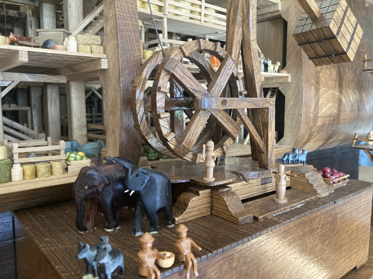 Υπάρχουν λειτουργικά μοντέλα κατασκευαστικών γερανών που βασίζονται σε πραγματικά σχέδια ρωμαϊκών, ελληνικών και αιγυπτιακών τύπων, καθώς «κανείς δεν ήξερε τι χρησιμοποιούσε ο Νώε», είπε. Ο ίδιος ο Νώε απεικονίζεται σε διάφορες σκηνές, μεταξύ των οποίων και η ώρα που πίνει χυμό σταφυλιού στην κουζίνα της Κιβωτού, μια σκηνή με βιβλική σημασία.