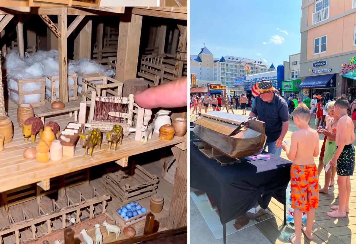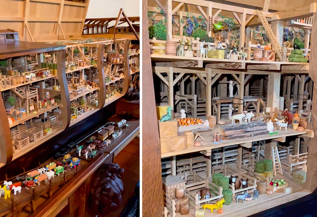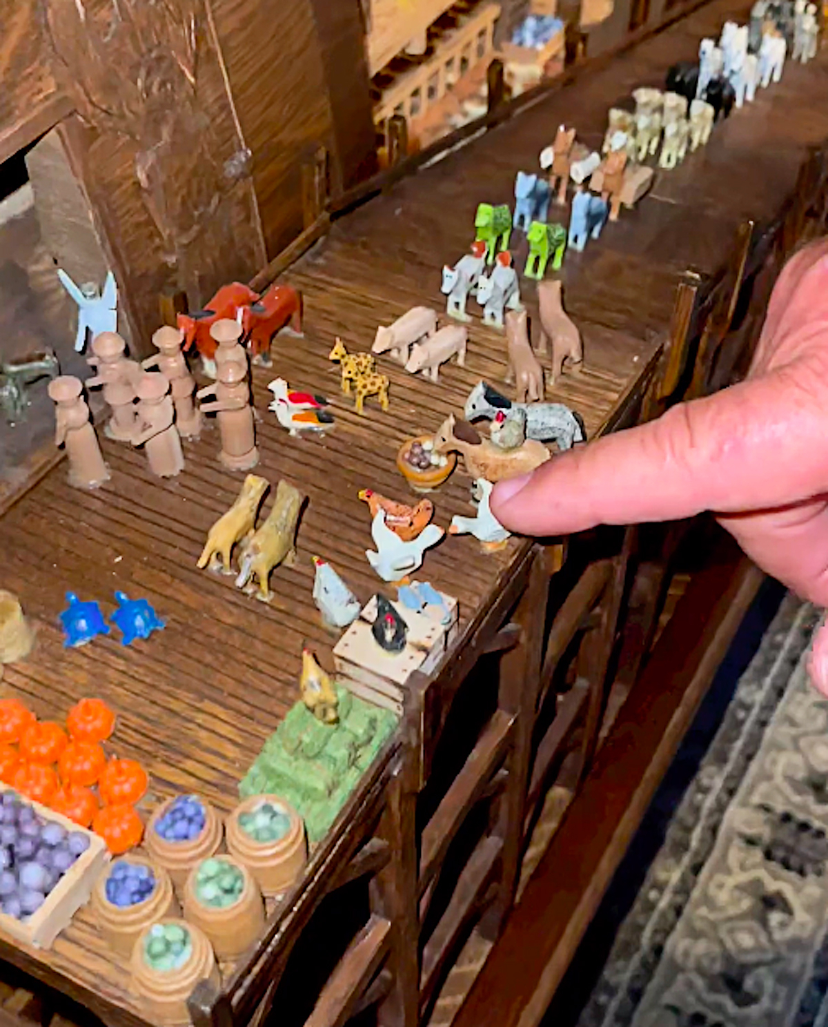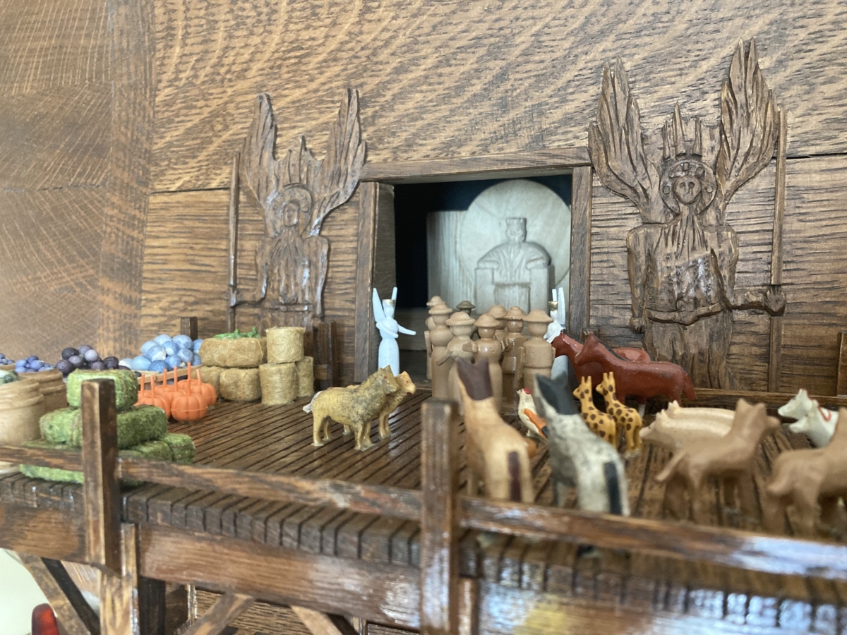 «Τρίτον, θέλαμε να ενσωματώσουμε ένα μάθημα στο μοντέλο», είπε. Η Κιβωτός λέγεται ότι ήταν κατασκευασμένη από ξύλο gopher και καλυμμένη με πίσσα, ένα είδος ρητίνης από το δέντρο καφάρ, που δηλώνει την εβραϊκή λέξη για την εξιλέωση. «Έτσι, η ιδέα εκεί είναι ότι όλοι όσοι μπήκαν στην Κιβωτό θα φανταστούν ότι έχουν εξιλεωθεί για τις αμαρτίες τους», είπε ο κ. Τζένκινς.