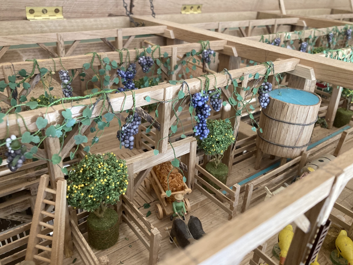 Ο κος Τζένκινς ανακάλυψε επίσης δημοφιλείς μινιατούρες σιδηροδρομικών γραμμών που συνέβαλαν τα μάλα, προσφέροντας μικροσκοπικές μπάλες σανού, οπωροφόρα δέντρα και είδη διατροφής και ποτών. Πρόσθεσε φώτα LED ως λάμπες πετρελαίου, χειροκίνητους ανελκυστήρες με κινούμενα ζώα και ηχεία Bluetooth για τη μετάδοση των ήχων των ζώων για πρόσθετο ρεαλισμό.